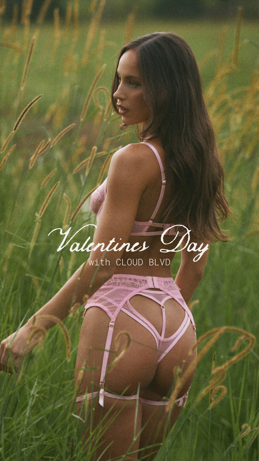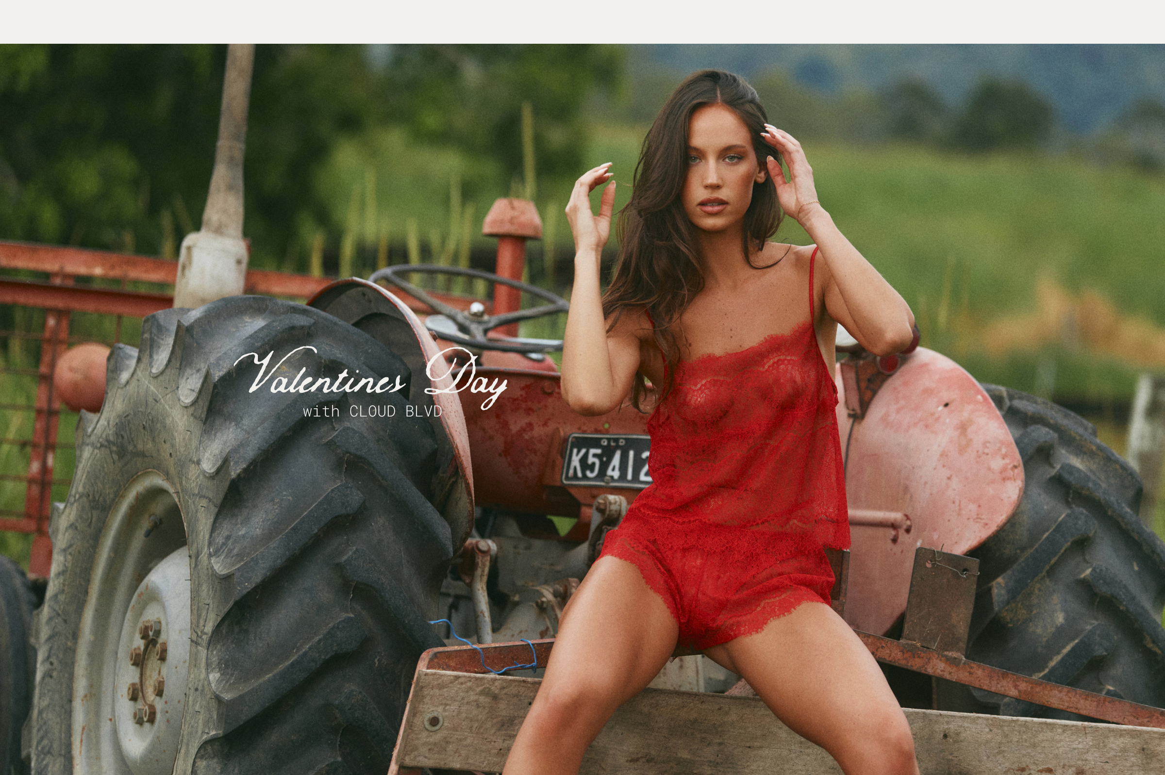 A sun-drenched countryside story. Lace moves through golden fields, the air warm with heat, afternoons stretching across open land. Romance feels intimate, effortless, and wild. Explore Valentine’s with Cloud Blvd & Olivia Mathers.